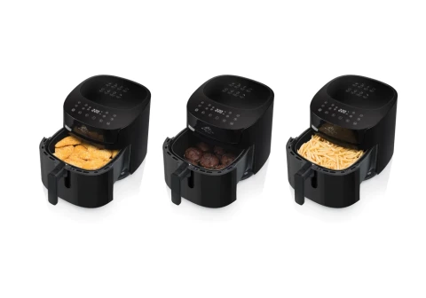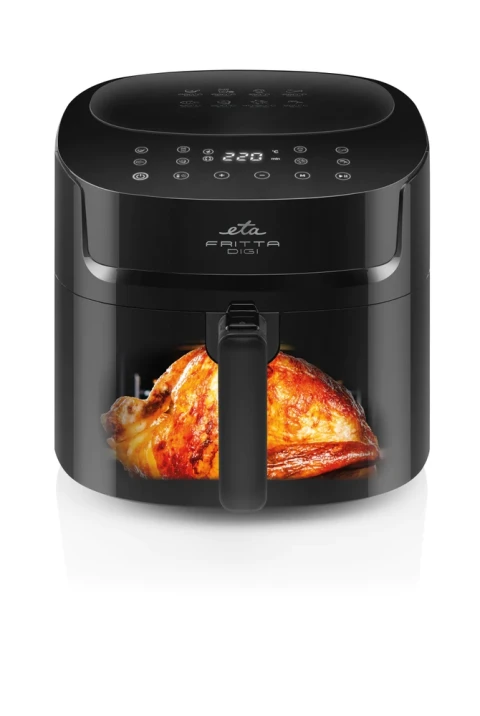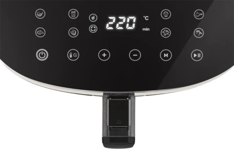 ცხელი ჰაერის ფრიტურნიცა, ჯანმრთელი შეწვა და ცხობა, 8 წინასწრდაპროგრამირებული რეჟიმი, პროდუქტის გაშრობის (ჩირი) თაიმერი 2 - 9 სთ. ელეგანტური სენსორული მართვა (touch control) და LED დისფლეი, მოხსნადი მიკვრის საწინააღმდეგო კონტეინერი, ხმოვანი სიგნალი, თერმოიზოლაციის სახელური, არამოცურებადი ფეხები სტაბილურობისთვის, პლასტიკის კონსტრუქცია