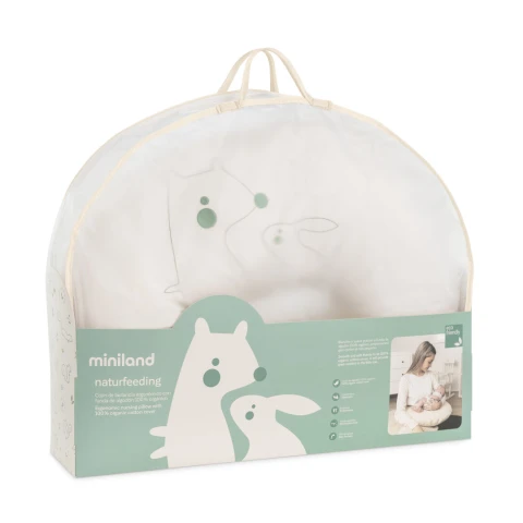 ერგონომიული ლაქტაციის ბალიში. საფარი დამზადებულია 100% ორგანული ბამბისგან. ლაქტაციის ბალიში იდეალურია ძუძუთი ან ბოთლიდან კვებისთვის, რადგან ის ათავისუფლებს დედის ზურგს, კისერს და ხელებს და ასევე უზრუნველყოფს ბავშვის უფრო კომფორტულ მდგომარეობას. ასევე, ერგონომიული დიზაინის წყალობით, ის ადაპტირდება სხეულთან.
