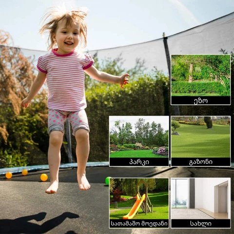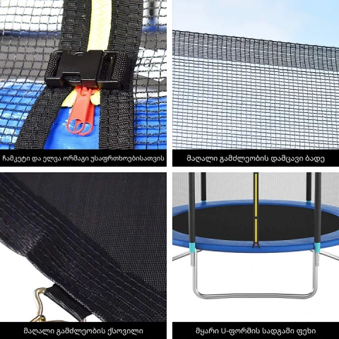 ტიპი: ასაწყობი ბატუტიდიამეტრი: 150 სმმაქსიმალური დატვირთვა: 100 კგსრული სიმაღლე: 160 სმდამცავი ბადის სიმაღლე: 125 სმფეხის სიმაღლე: 35 სმ