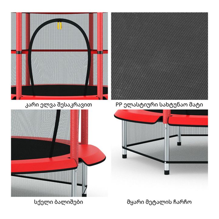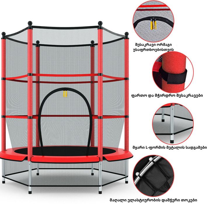 უსაფრთხოების ბადე იკვრება როგორც ელვა შესაკრავით, ასევე 3 ღვედით.