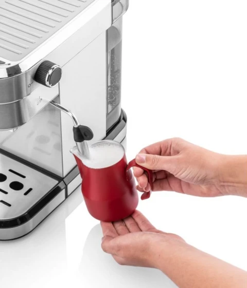 ყავის აპარატი Espresso, განკუთვნილია მხოლოდ დაფქვილი ყავისთვის, გაცხელების სისტემა Thermoblock, ფილტრის ალუმინის სახელური (რიჩაგი) და უჟანგავი ფოლადის ფილტრი წნევის ქვეშ ორმაგი ძირით, ფუნქცია "ცხელი წყალი" ცხელი სასმელების მოსამზადებლად, ოფცია 1 ან 2 ჭიქა ყავა, ინდივიდუალური რეგულირება ყავის მოცულობის მომხმარლების მოთხოვნის საფუძველზე, ორთქლის მილი რძის ქაფის მოსამზადებლად, მოხსნადი გამჭვირვალე წყლის კონტეინერი წყლის დონის კონტროლისთვის, წყლის სისტემის გაგრილების ფუნქცია, ჭიქების შემათბობელი "თეფში", ელეგანტური უჟანგავი ფოლადის დიზაინი, აქსესუარები: საზომი კოვზი, 2 უჟანგავი ფოლადის ფილტრი (ერთი ჭიქა, ორი ჭიქა)