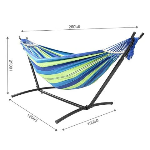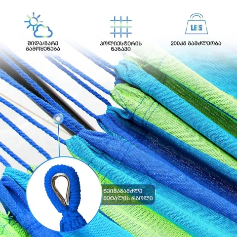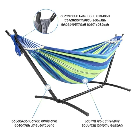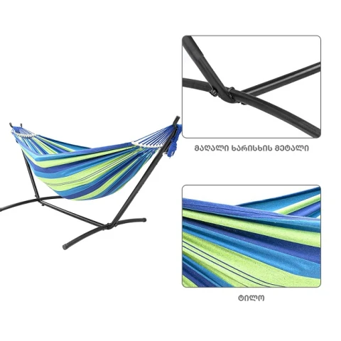 მასალა: მეტალი, ტილო, ხეზომა: 107 x 260 smგამძლეობა: 200 კგფერი: შავი/ლურჯიჰამაკი - ხის ჯოხებითშესანახი ჩანთა