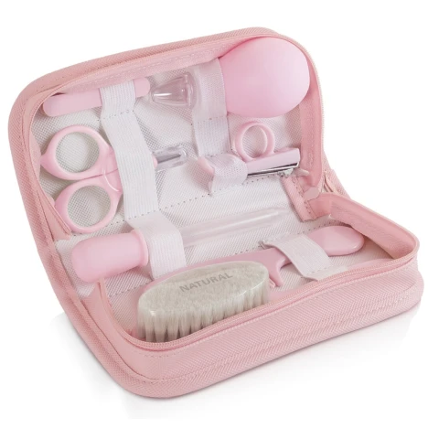 ნაკრებში შედის: პიპეტი, ცხვირის ასპირატორი, სავარცხელი, თმის ბუნებრივი ჯაგრისი, მაკრატელი, ქლიბი, მაკვნეტარა, წყალგაუმტარი შესანახი ჩანთა