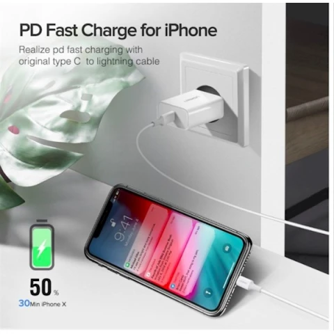 მობილურის დამტენი UGREEN CD137 (60450) Fast Charging Power Adapter For iPhone with PD 20W EU (White)