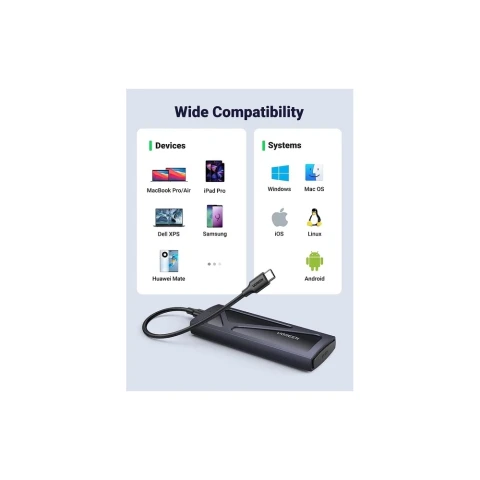მთავარიტექნიკამობილური ტელეფონები და აქსესუარებიდამტენი, კაბელი და ადაპტე რიადაპტერიმყარი დისკის ქეისი UGREEN CM578(15512), M.2 NVMe SSD Enclosure Adapter, Grey