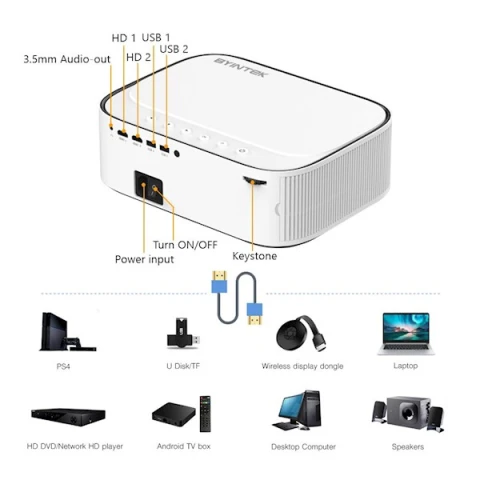 მთავარიტექნიკაკომპიუტერული ტექნიკა და აქსესუარებისაოფისე ტექნიკაპროექტორიპროექტორი BYINTEK K45 Smart Home Theater Projector, FHD, Support 4K, Android 9.0, LCD, LED, 700 ANSI lumens, WiFi, BT4.0, White