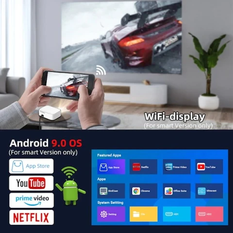 პროექტორი BYINTEK K45 Smart Home Theater Projector, FHD, Support 4K, Android 9.0, LCD, LED, 700 ANSI lumens, WiFi, BT4.0, White