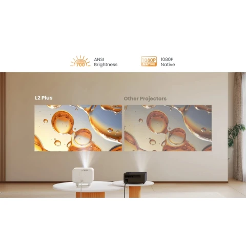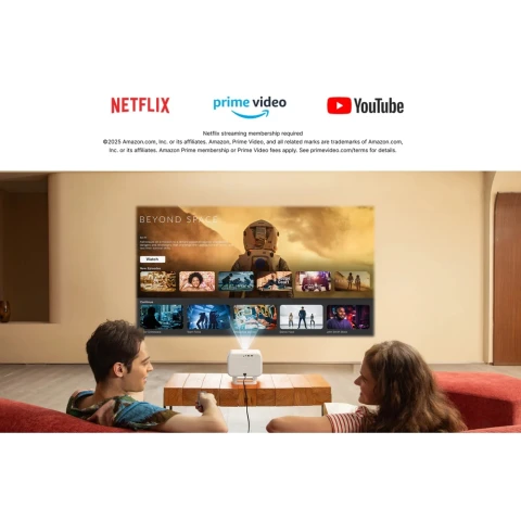 კომპლექტაცია: პროექტორი, პროექტორის დისტანციური მართვა, ლინზის საფარი