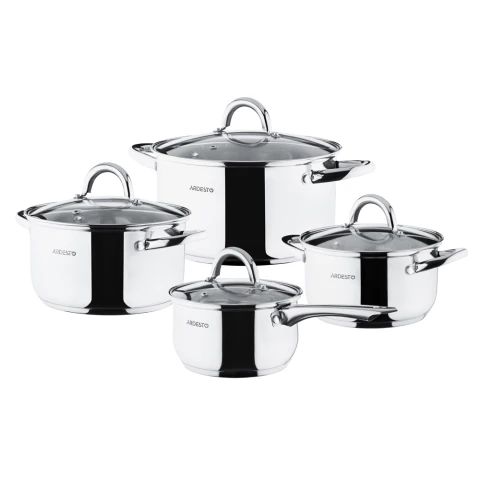 კომპლექტი: 3 ქვაბი, 4 თავსახური, ქვაბი