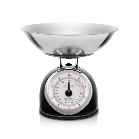რეტრო სტილის სამზარეულოს სასწორი სრულიად მეტალის კონსტრუქციით ბრენდი: ETAმოდელი: ETA577790040კონსტრუქცია: ჯამითჯამის მასალა: უჟანგავი ფოლადიჯამის მოცულობა: 2ლმაქსიმალური წონა: 5 კგაწონვის სიზუსტე: 25 გრწონის ე რთეულები: გრამი (g), კილოგრამი (kg), უნცია (oz), ფუნტი (lb)სიგანე: 25 სმსიმაღლე: 21.5 სმსიღრმე: 25 სმწონა: 1.07 კგგარანტია: 5 წელი
