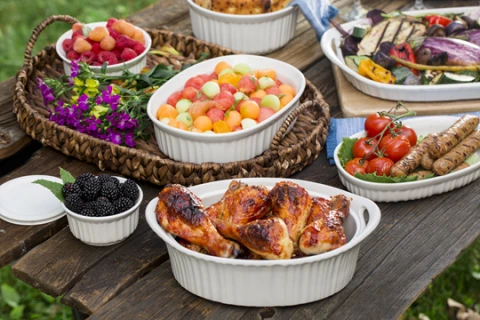 საცხობი ფორმა CorningWare French White III 1.4ლ ოვალური შუშის თავსაფრით