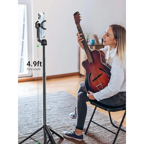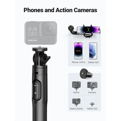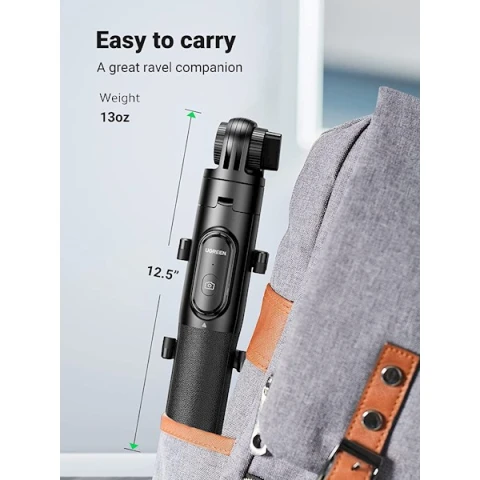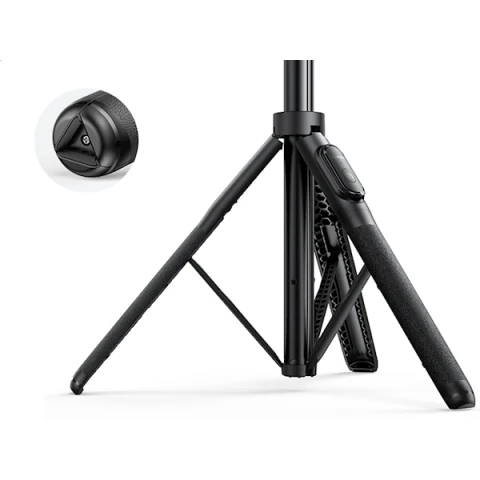 პროდუქტის ტიპი: სელფის ჯოხი თავსებადი მოწყობილობები: ვიდეოკამერა, კამერა, სმარტფონი მასალა: ალუმინი მინიმალური სიმაღლე: 30 სანტიმეტრი მაქსიმალური სიმაღლე: 159 სანტიმეტრი სამფეხის თავის ტიპი: Tilt Heads მსუბუქი, გამძლე დიზაინი რეგულირებადი, მბრუნავი და კომპაქტური მოხსნადი Bluetooth პულტი Bluetooth: 5.1 მუშაობის მანძილი: ≤10 მ ბატარეის ტიპი: CR 3V ბატარეა აკუმულატორის ტევადობა: 120 mAh ფერი: შავი გარანტია: 2 წელი