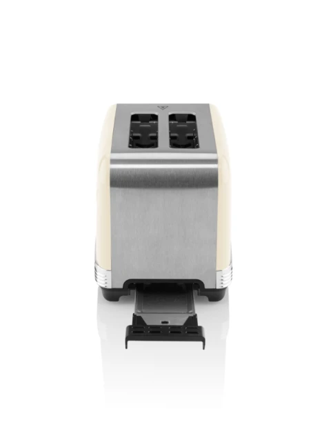 ტოსტერი 2 ნაჭერი ტოსტისთვის. პური თანაბრად იბრაწება ორივე მხრიდან; აქვს გალღვობის ფუნქცია, შეთბობის ფუნქცია, ღილაკი STOP მუშაობის დაუყონებლივ შეწყვეტისთვის, მუშაობის LED ინდიკცია, პურის ნამცეცების უჯრა, შეთბობის და ხრაშუნა კანის გამოსაცხობი სადგარი, უჟანგავი ფოლადის დიზაინი.