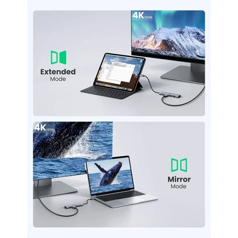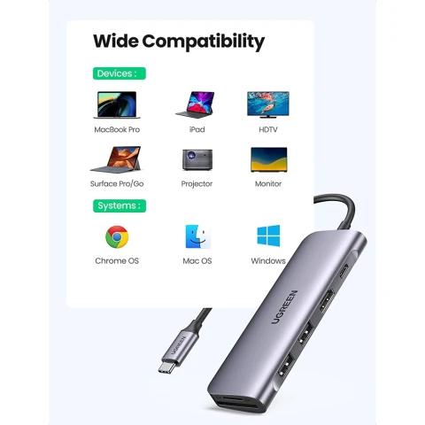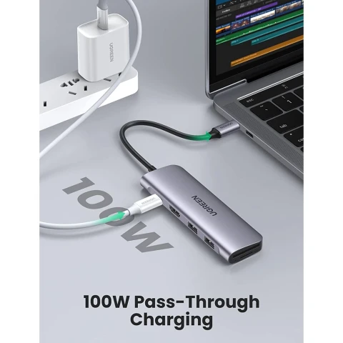 ჰაბი UGREEN CM195 Type-C (70411) Type-C 6-in-1 USB-C Hub, 2xUSB3.0, HDMI, TF/SD, PD, Gray