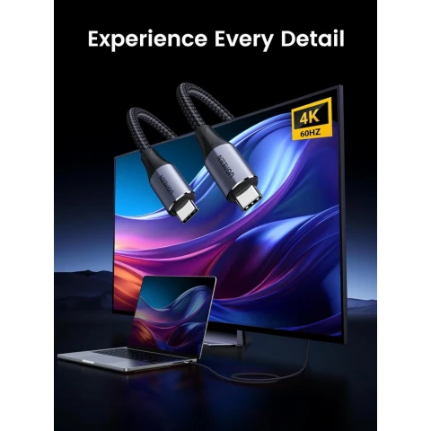 მთავარიტექნიკამობილური ტელეფონები და აქსესუარებიდამტენი, კაბელი და ადაპტე რიკაბელივიდეო კაბელი UGREEN US355 (80150), 4K Video Cable , 100W, Type-c To Type-c 3.2 Gen 2 Cable, 1m, Black
