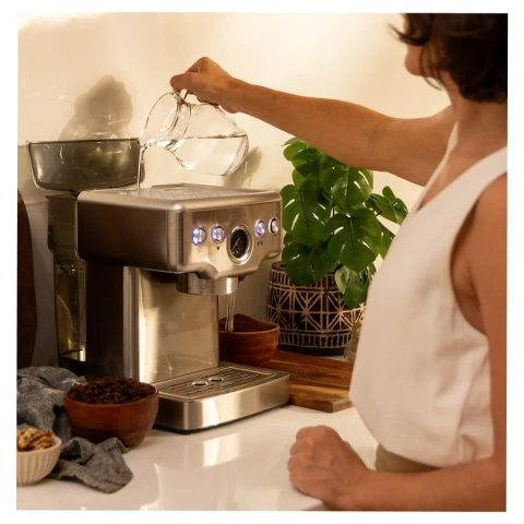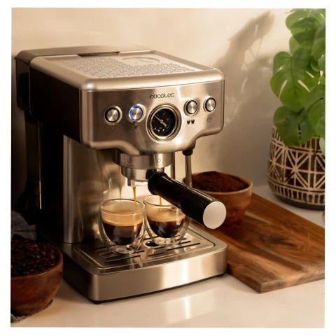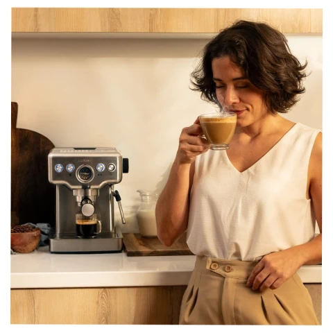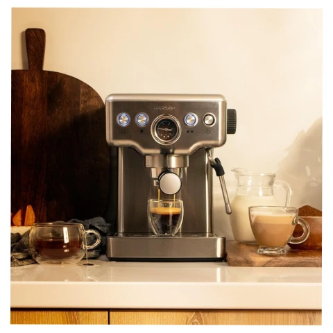 პროდუქტის ტიპი: ყავის აპარატი სიმძლავრე: 1465 W მოცულობა: 1.8 ლ მოხსნადი წყლის რეზერვუარი ცხელი წყალი რძის ამომყვანი ყავის ტიპი: ყველა ტიპის ყავის მომზადება ტემპერატურის შენარჩუნება მასალა: მეტალი ფერი: ვერცხლისფერი ზომა: 35 x 26.5 x 32.5 სმ გარანტია: 2 წელი