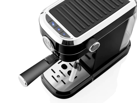 ყავის აპარატი Espresso. განკუთვნილია მხოლოდ დაფქვილი ყავისთვის, გაცხელების სისტემა Thermoblock, ფილტრის ალუმინის სახელური (რიჩაგი) და უჟანგავი ფოლადის ფილტრი წნევის ქვეშ ორმაგი ძირით, ფუნქცია "ცხელი წყალი" ცხელი სასმელების მოსამზადებლად, ინდივიდუალური რეგულირება ყავის მოცულობის მომხმარლების მოთხოვნის საფუძველზე, ორთქლის მილი რძის ქაფის მოსამზადებლად, მოხსნადი გამჭვირვალე წყლის კონტეინერი წყლის დონის კონტროლისთვის, წყლის სისტემის გაგრილების ფუნქცია, ჭიქების შემათბობელი "თეფში".ელეგანტური უჟანგავი ფოლადის დიზაინი.